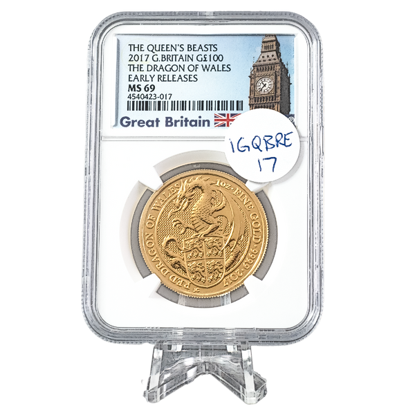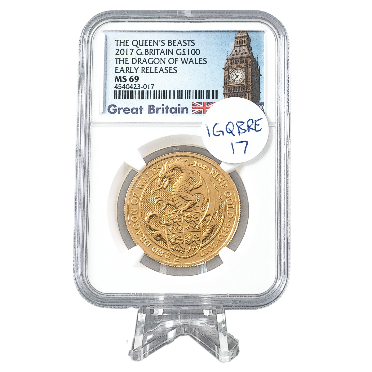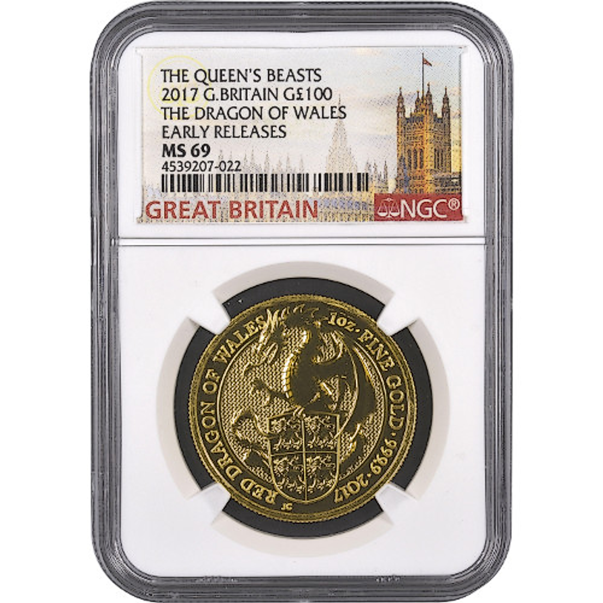 Up for bidding is the 2017 1 oz United Kingdom Gold Queen's Beast "Dragon" Coin - Graded MS 69 by NGC minted by the Royal Mint.