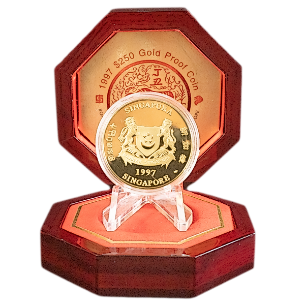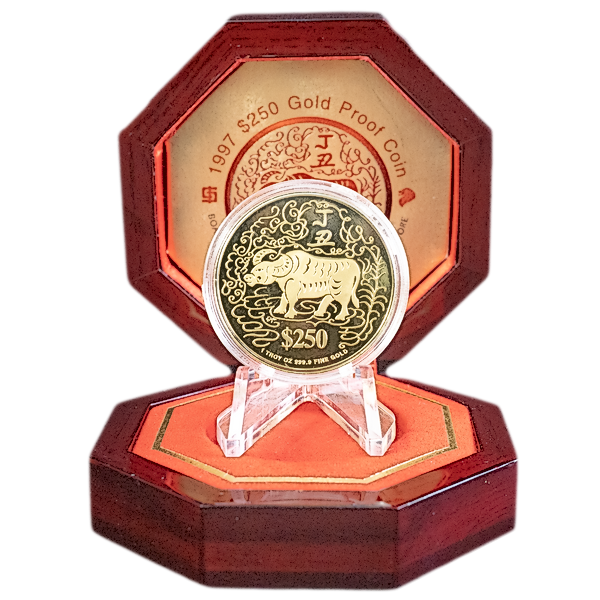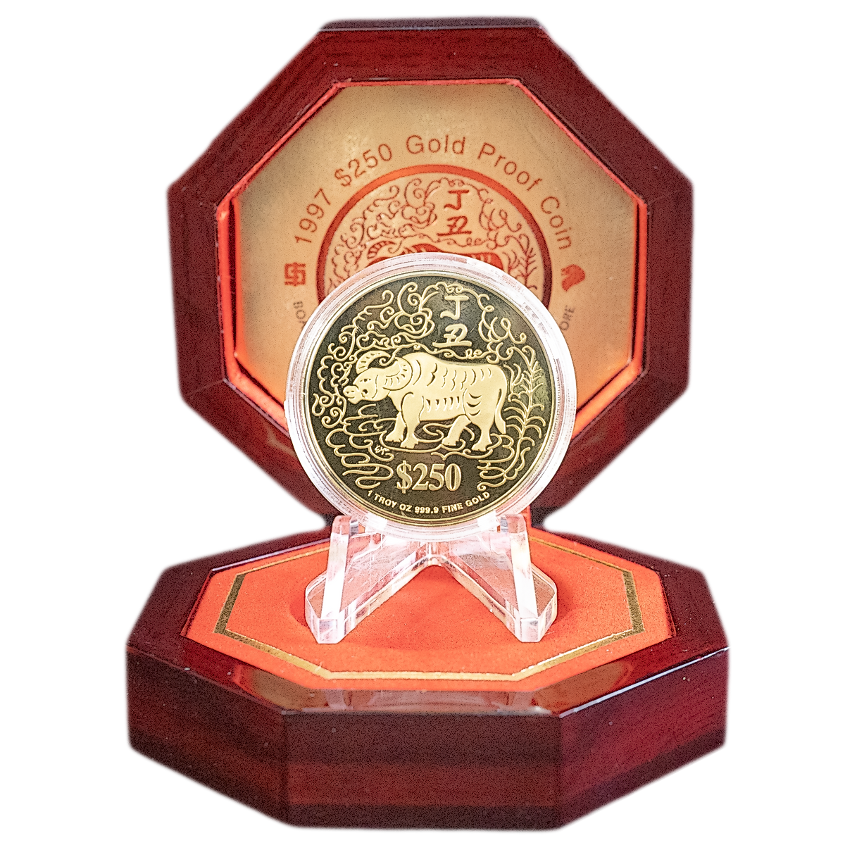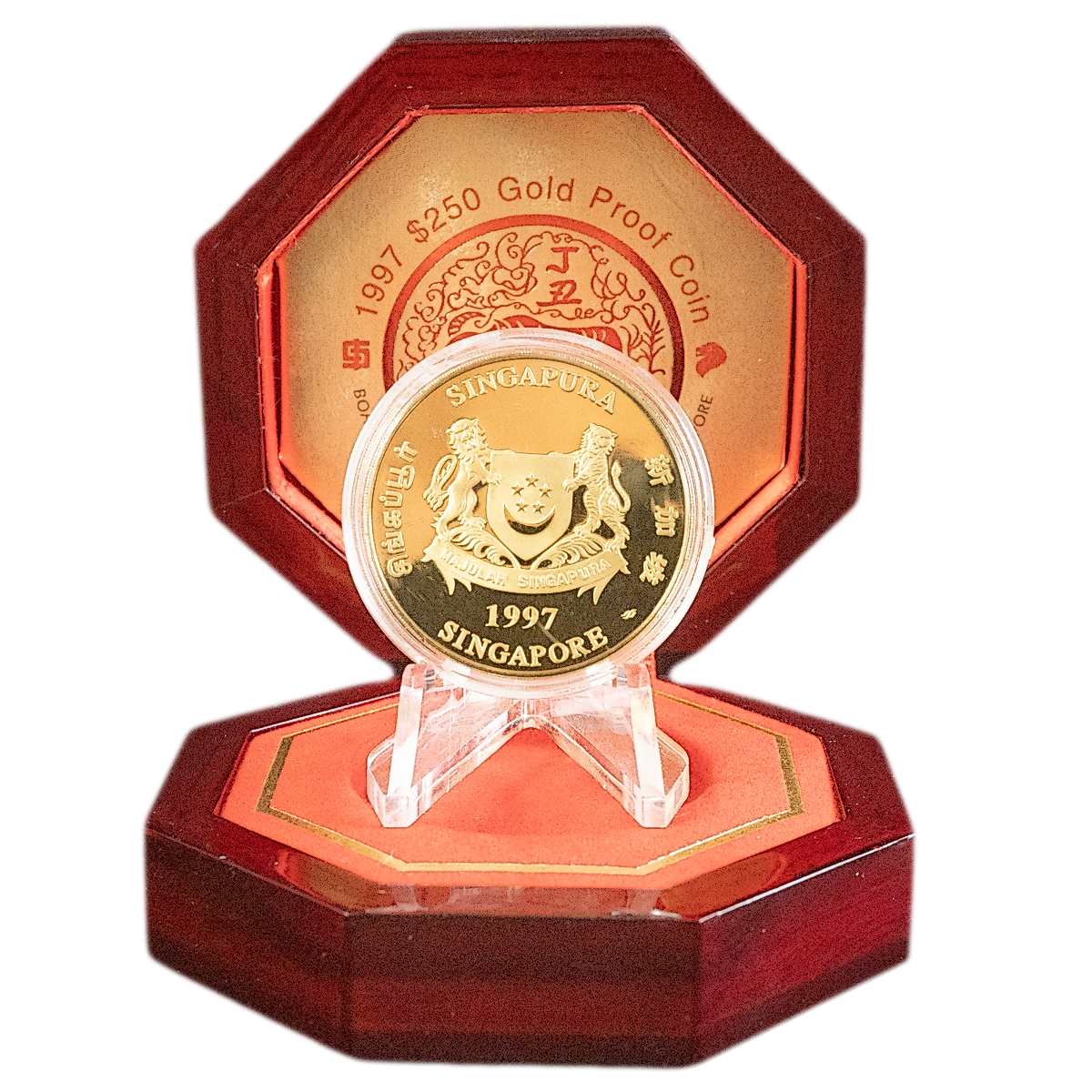 Up for bidding is the 1997 1 oz Singapore Mint "Year of the Ox" Proof Gold Coin (Pre-Owned in Good Condition). This coin is minted by the Singapore Mint to celebrate the Year of the Ox in 1997