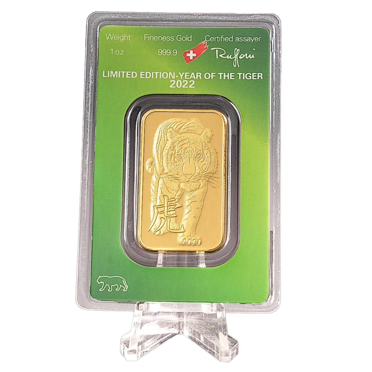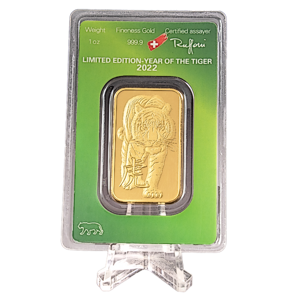 Up for bidding is 2022 1 oz Argor-Heraeus Gold Lunar Series "Year of the Tiger" Bar. This handsome 1 oz minted Year of the Tiger gold bar has a gold purity of 99.99% and is fabricated by Argor-Heraeus, one of Switzerland's most prestigious precious metals refiners. Argor-Heraeus is headquartered in Mendrisio in the Swiss Canton of Ticino, beside the Italian border.