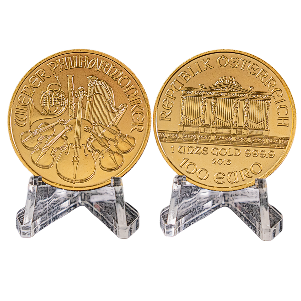 Gold Vienna Philharmonic coins are legal tender coins in the Eurozone. The 1 oz gold Vienna Philharmonic has a face value of €100.