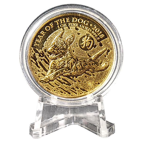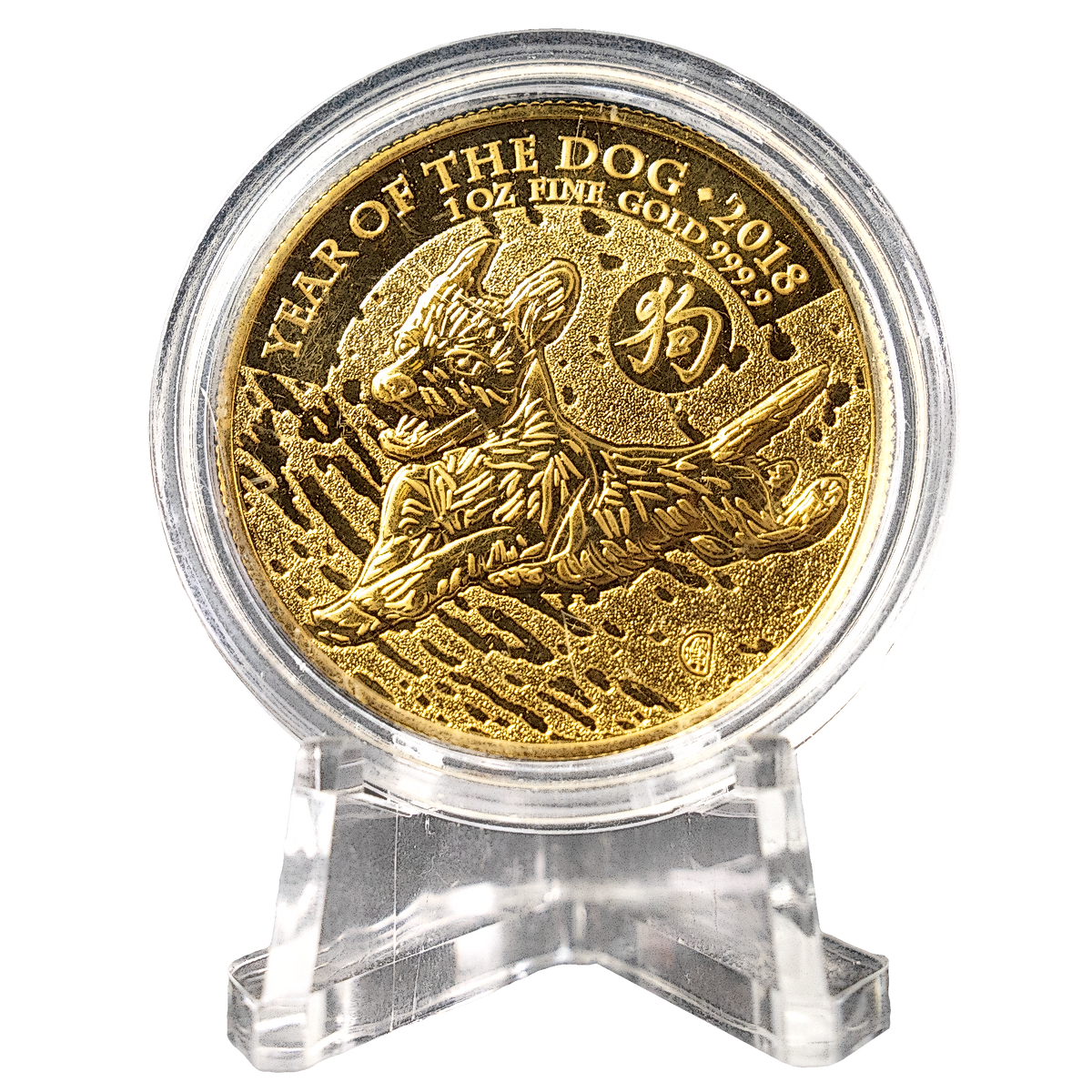 Up for bidding is 2018 1 oz United Kingdom Gold Lunar Series "Year of the Dog" Coin. The 1 oz Lunar Year of the Dog gold coin is minted by the British Royal Mint.
