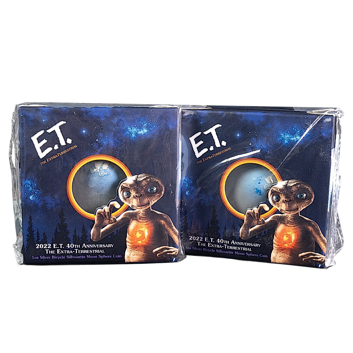 Up for bidding is 2 pcs of 1 oz 2022 Niue Silver ET 40th Anniversary Moon Sphere Coins - Total 2 oz Silver. This beautiful 1 oz Silver Moon Sphere coin celebrates 40 years since the movie ET captured the imaginations of many.