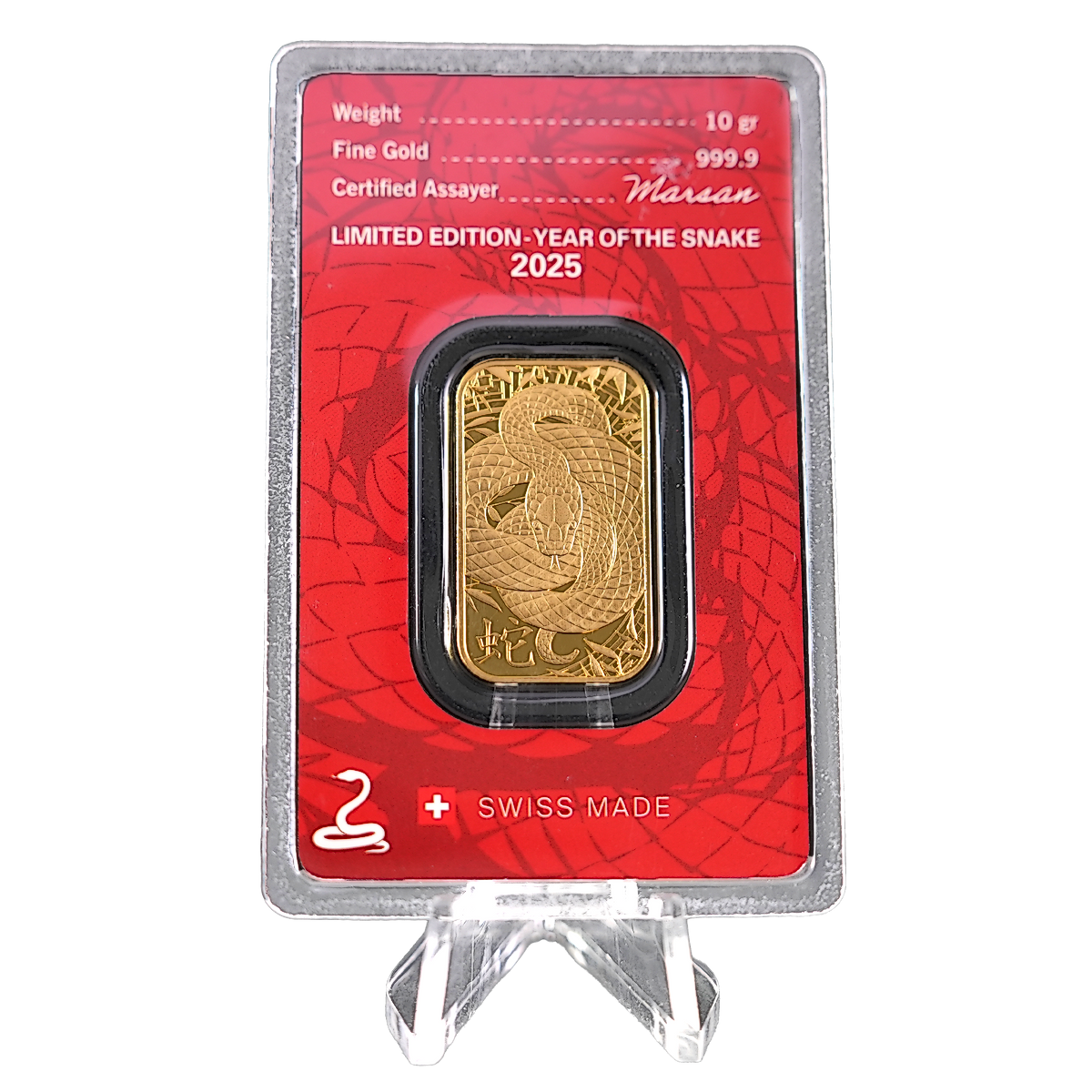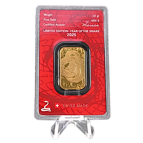 Up for bidding is 2025 10 gram Argor-Heraeus Gold Lunar Series "Year of the Snake" Bar. This 10 gram minted Year of the Snake gold bar is produced by leading Swiss gold refiner Argor-Heraeus at its gold refinery in Mendrisio in Southern Switzerland.
