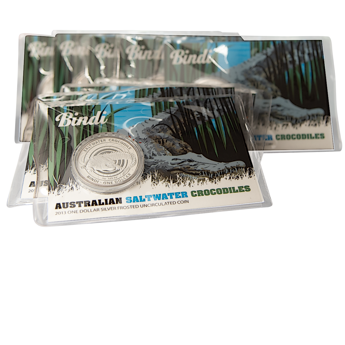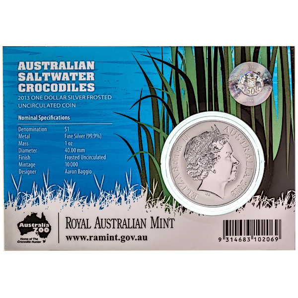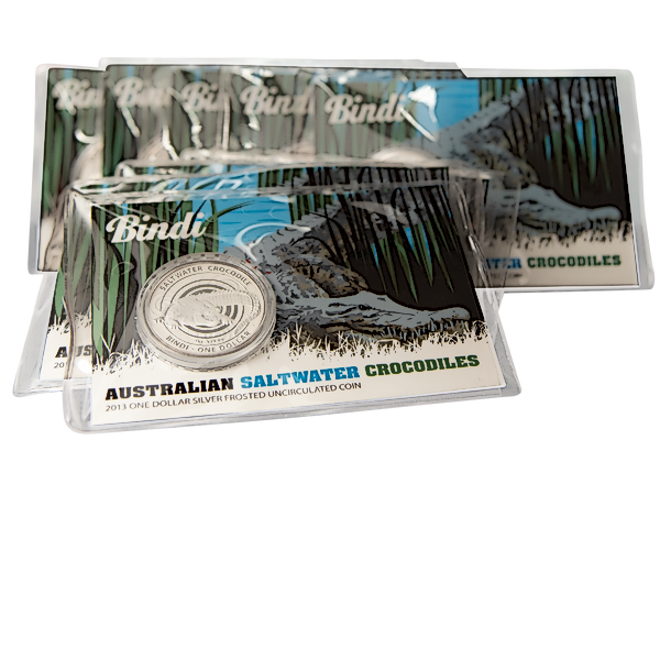 Up for bidding is 10 pcs of 1 oz 2013 Royal Australian Mint Silver Saltwater Crocodile Series "Bindi" Coin - Total 10 oz Silver Produced by Royal Australian Mint.