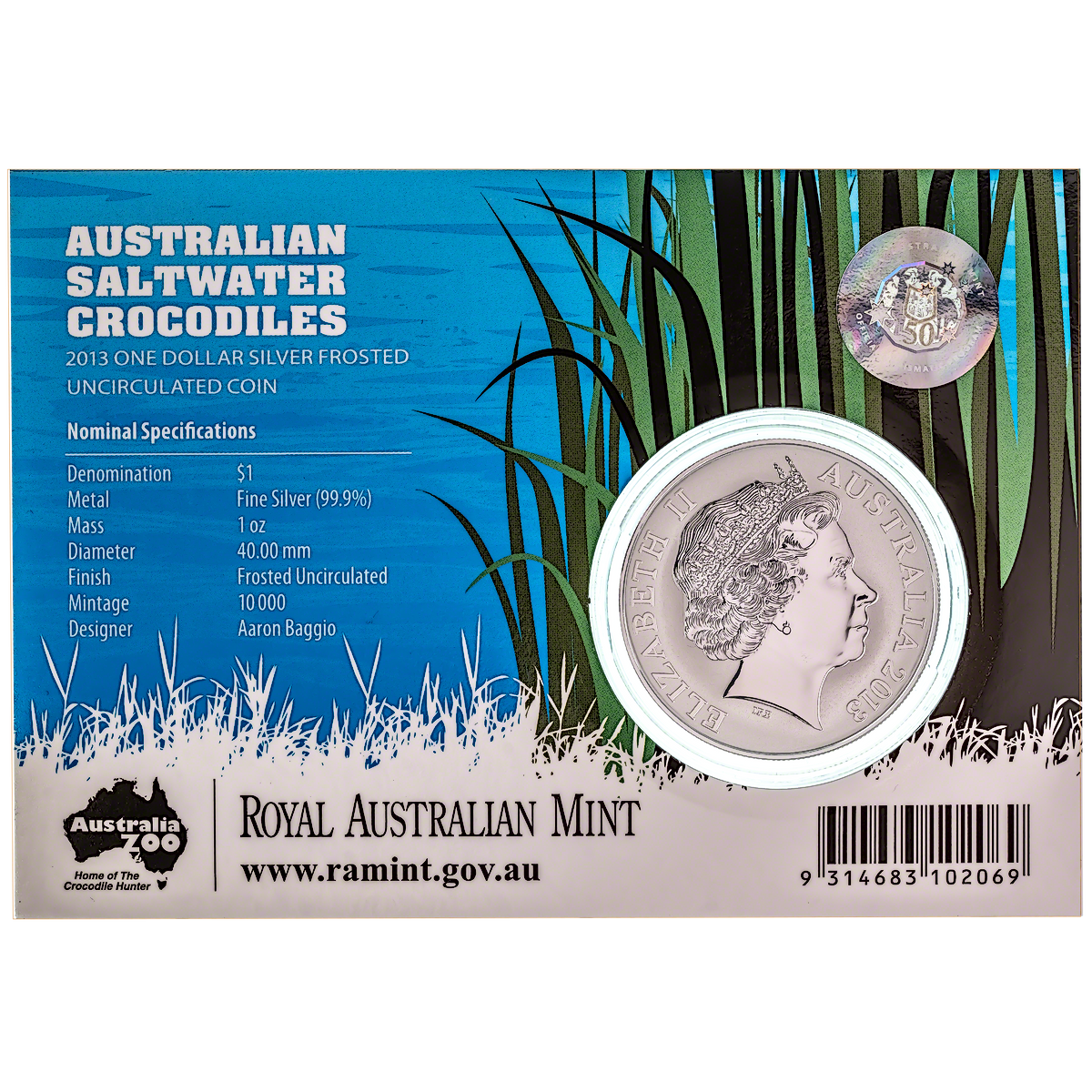 10 pcs of 1 oz 2013 R.A.M. Silver Saltwater Crocodile Series "Bindi" Coins - Total 10 oz Silver