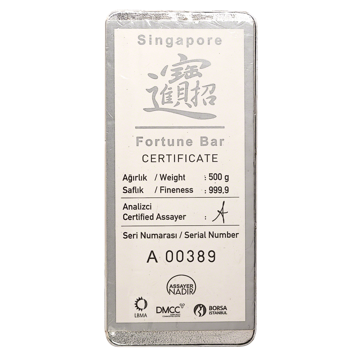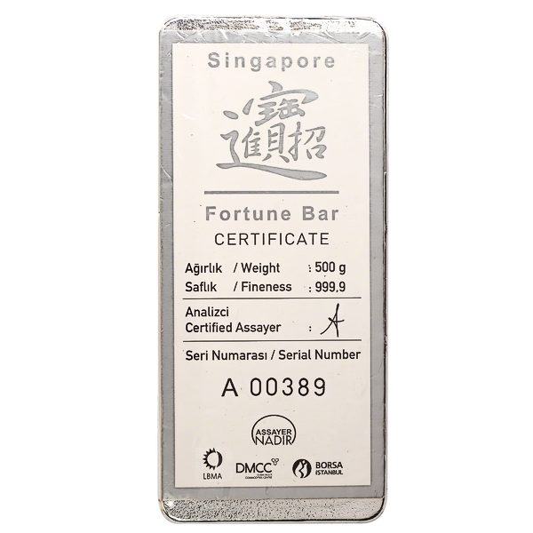 Up for bidding is 500 gram Nadir Silver Fortune Bar manufactured by Nadir Refinery.