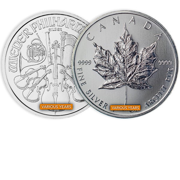 Mega Silver Coin Superlot : 10,000 x 1 oz Silver Coins (2,500 each x Britannia, Kangaroo, Maple, Philharmonic)