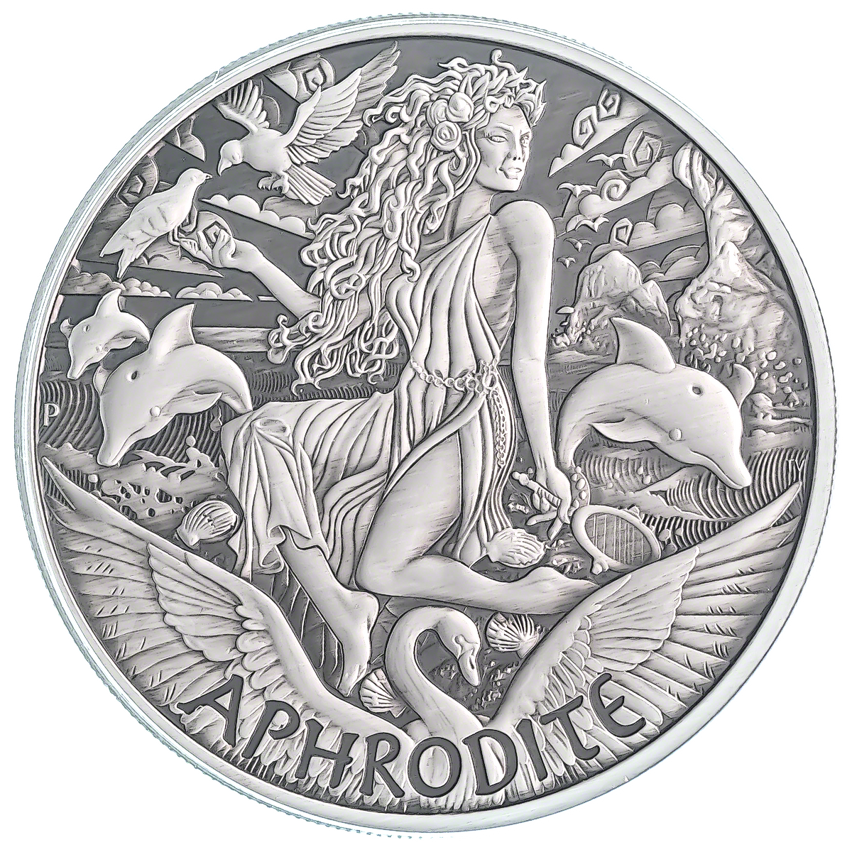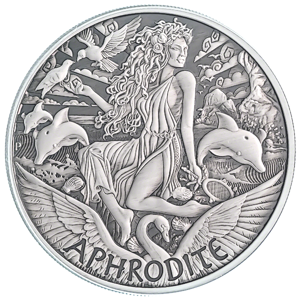 1 oz Gods of Olympus - Aphrodite Silver Antiqued coin minted by The Perth Mint.