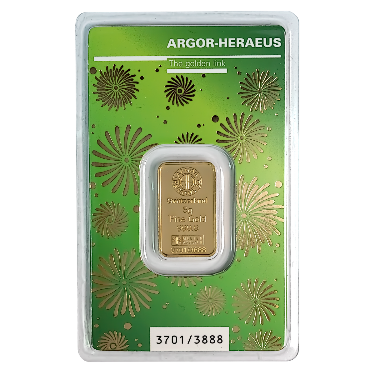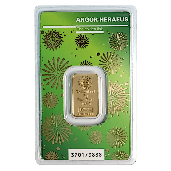 Each 5 g Argor Heraues gold bar has a gold purity of 99.99% and is presented in a secure transparent blister pack.