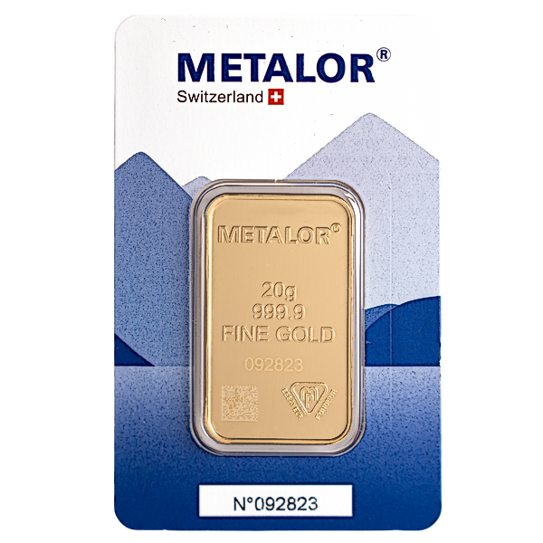 Each 20 g Metalor gold bar has a gold purity of 99.99% and is presented in a secure blister pack.