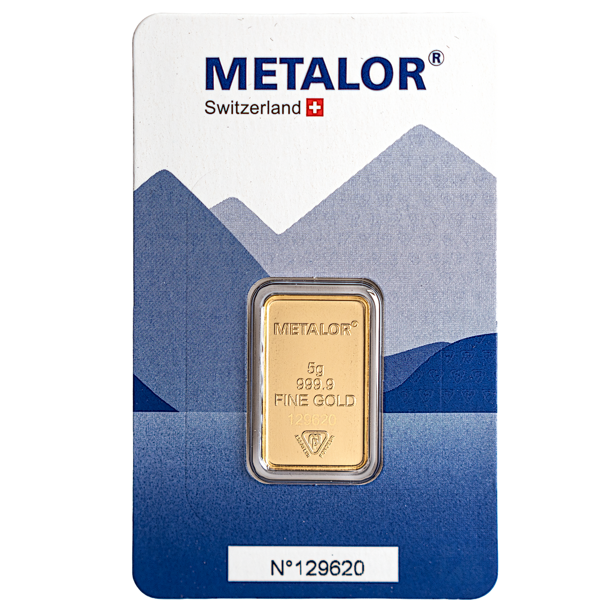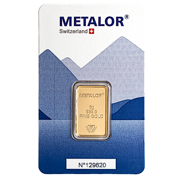Each 5 g Metalor gold bar has a gold purity of 99.99% and is presented in a secure blister pack.
