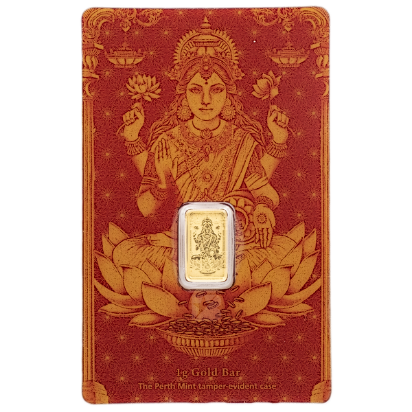 1 g Gold Diwali Lakshmi Gold Bullion Bar minted by The Perth Mint.