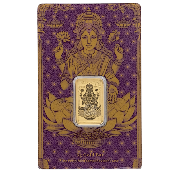 5 g Gold Diwali Lakshmi Gold Bullion Bar minted by The Perth Mint.