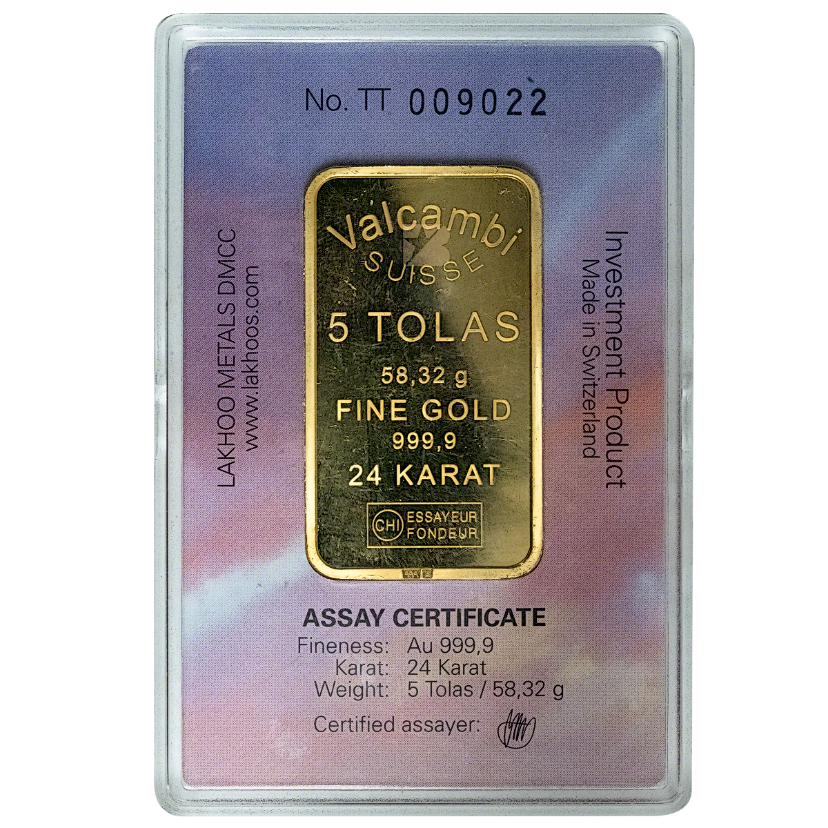 As this item is circulated in good condition, the gold bar may or may not be in an assay card.