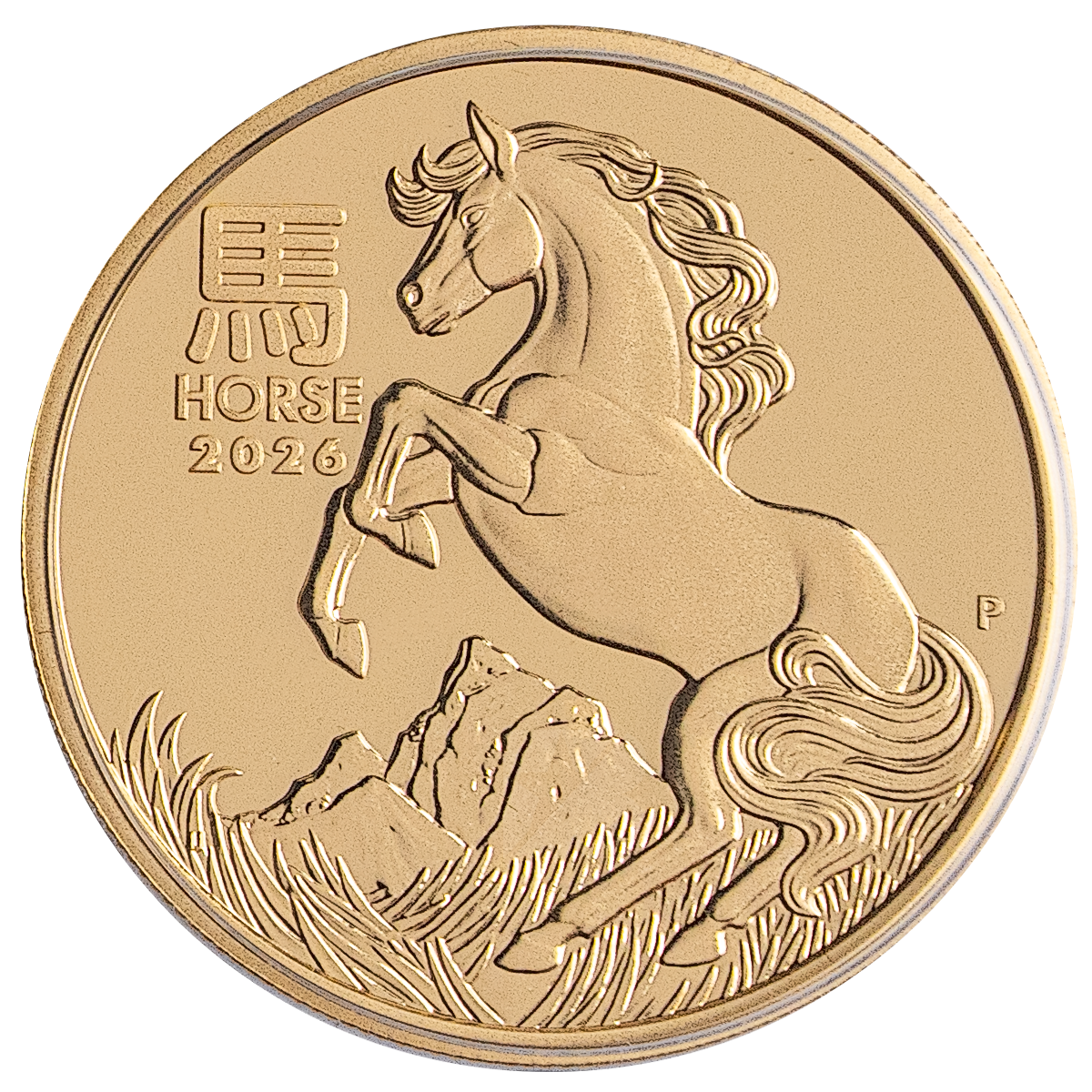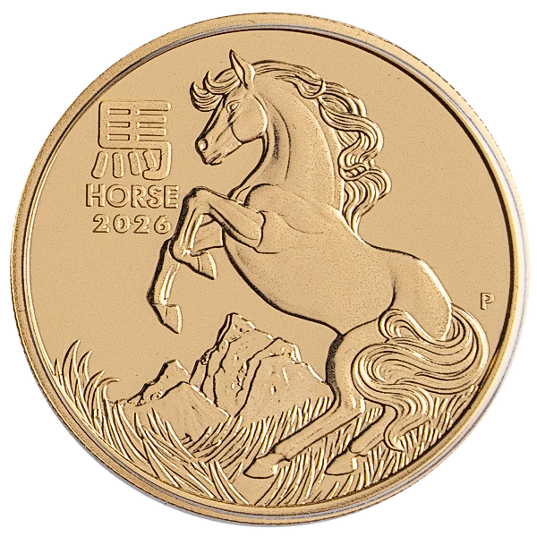 This 1 oz gold proof coin from Australia’s Perth Mint is minted in 99.99% pure gold and celebrates the Chinese Year of the Horse for 2026.