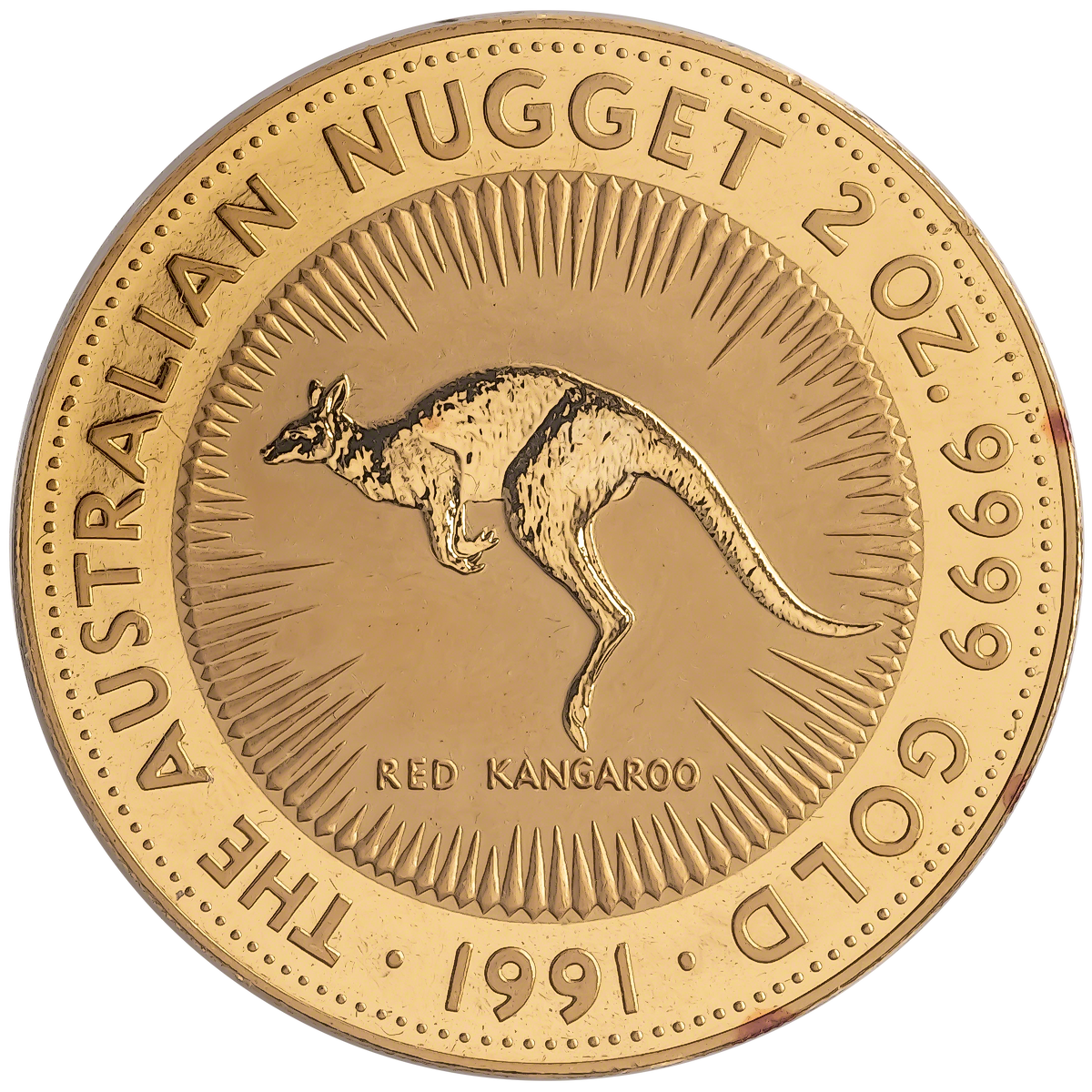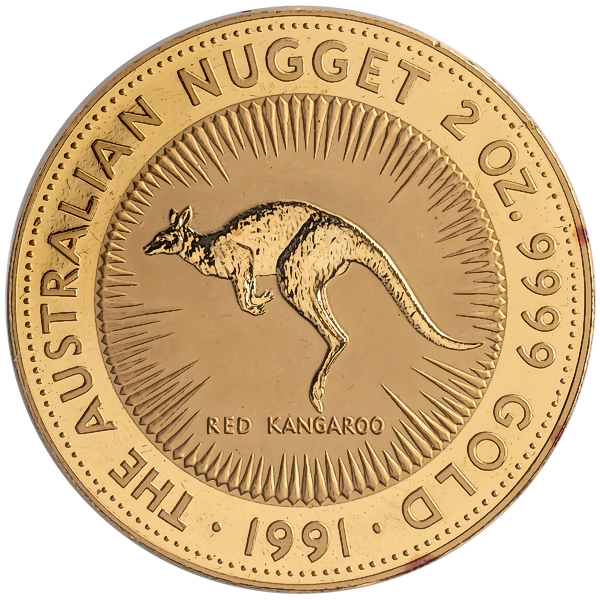 1991 2 oz Australian Gold Kangaroo Nugget Bullion Coin