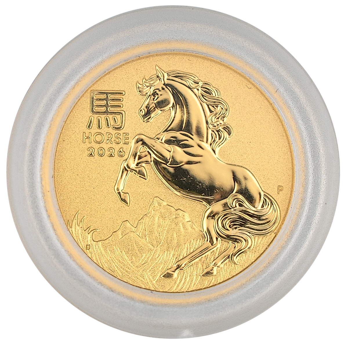 This is the smallest gold bullion coin in the 2026 Lunar series issued by Australia's Perth Mint. It celebrates the 2026 'Year of the Horse' in the Chinese Lunar calendar and is the seventh year in the Mint's Australian Lunar Series III coin releases.