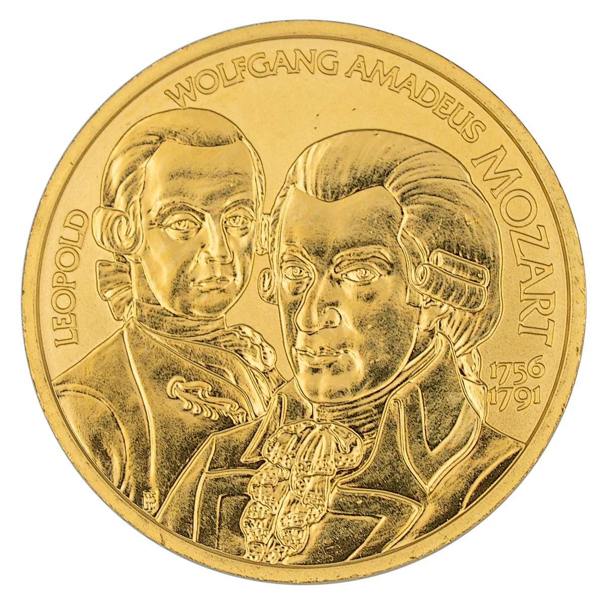 This unique gold coin is minted by the Austrian Mint to celebrate Wolfgang Amadeus Mozart, one of the greatest composers of the world.