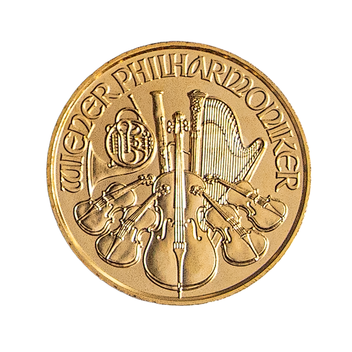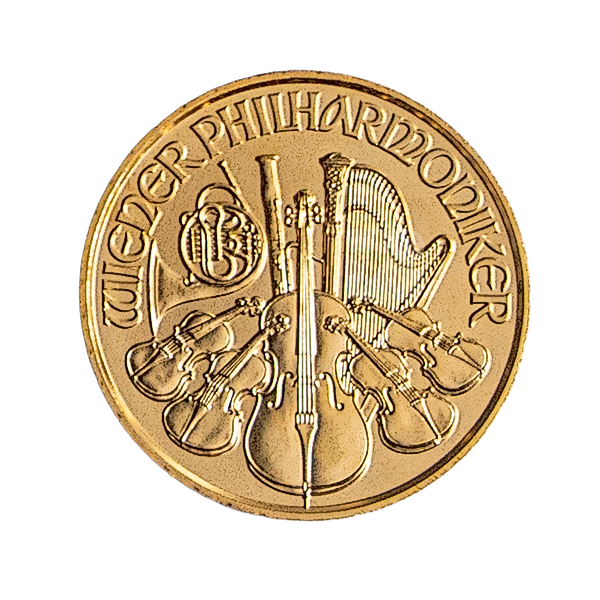The Wiener Philharmoniker or Vienna Philharmonic Gold Coin has been produced since 1989. The coin depicts the famed Vienna Philharmonic Orchestra.