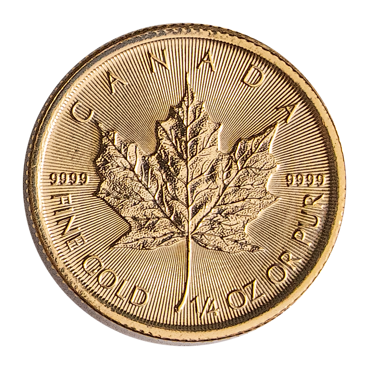 Each 1/4 oz Gold Maple Leaf coin has a gold purity of .9999 pure gold, which is the highest gold content of any production investment gold coin in the bullion world.