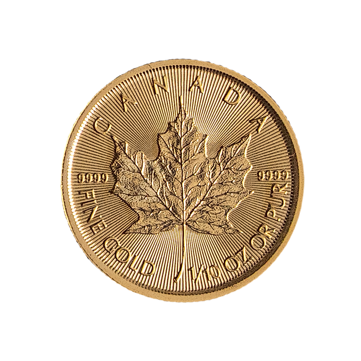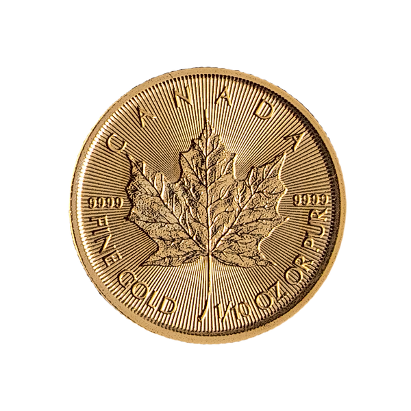 In addition to this small 1/10 oz weight, Gold Maple leaf bullion coins are also produced by the Royal Canadian Mint in the larger 1 oz, 1/2 oz and 1/4 oz sizes.