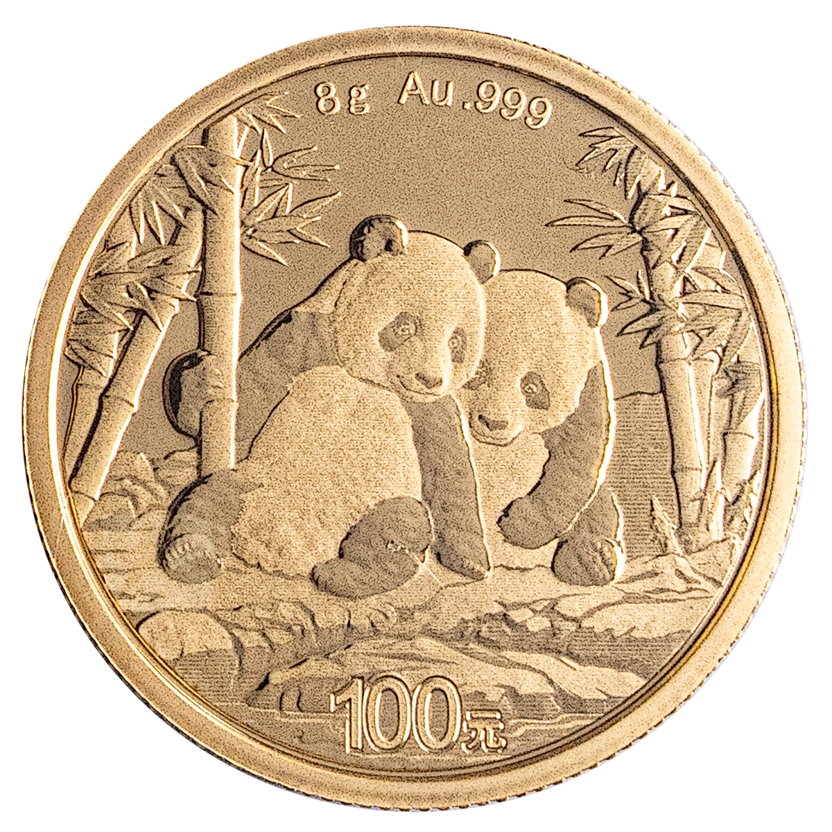 This Chinese gold panda coin is minted from 99.9% gold and has a weight of 8 grams or 0.257 troy ounces.