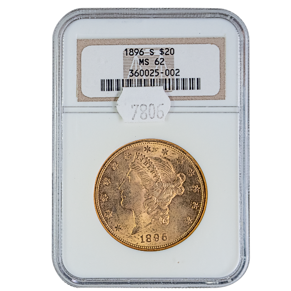 1896 US Liberty Gold Double Eagle Gold Coin - Graded MS 62 by NGC - 0.9675 oz