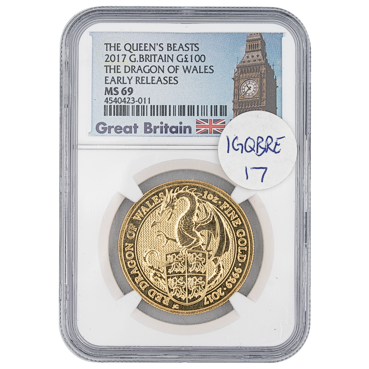 2017 1 oz United Kingdom Queen's Beast "Dragon" Gold Bullion Coin - Graded MS 69 by NGC
