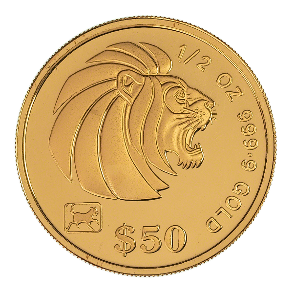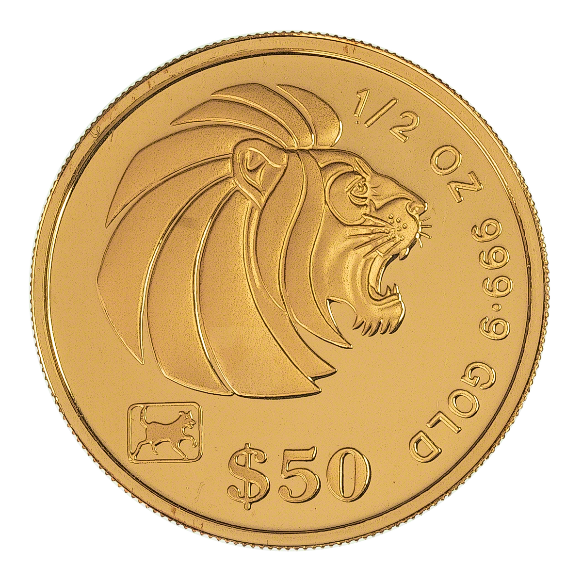 1/2 oz Singapore Gold Lion minted by the the Singapore Mint.