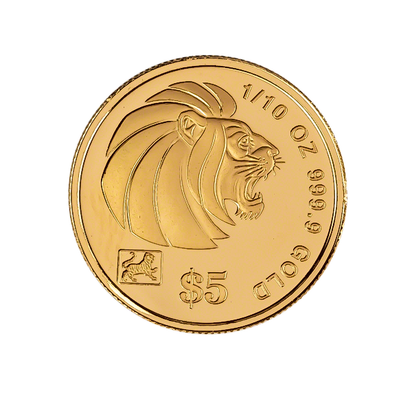 1/10 oz Singapore Gold Lion minted by the the Singapore Mint.