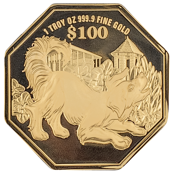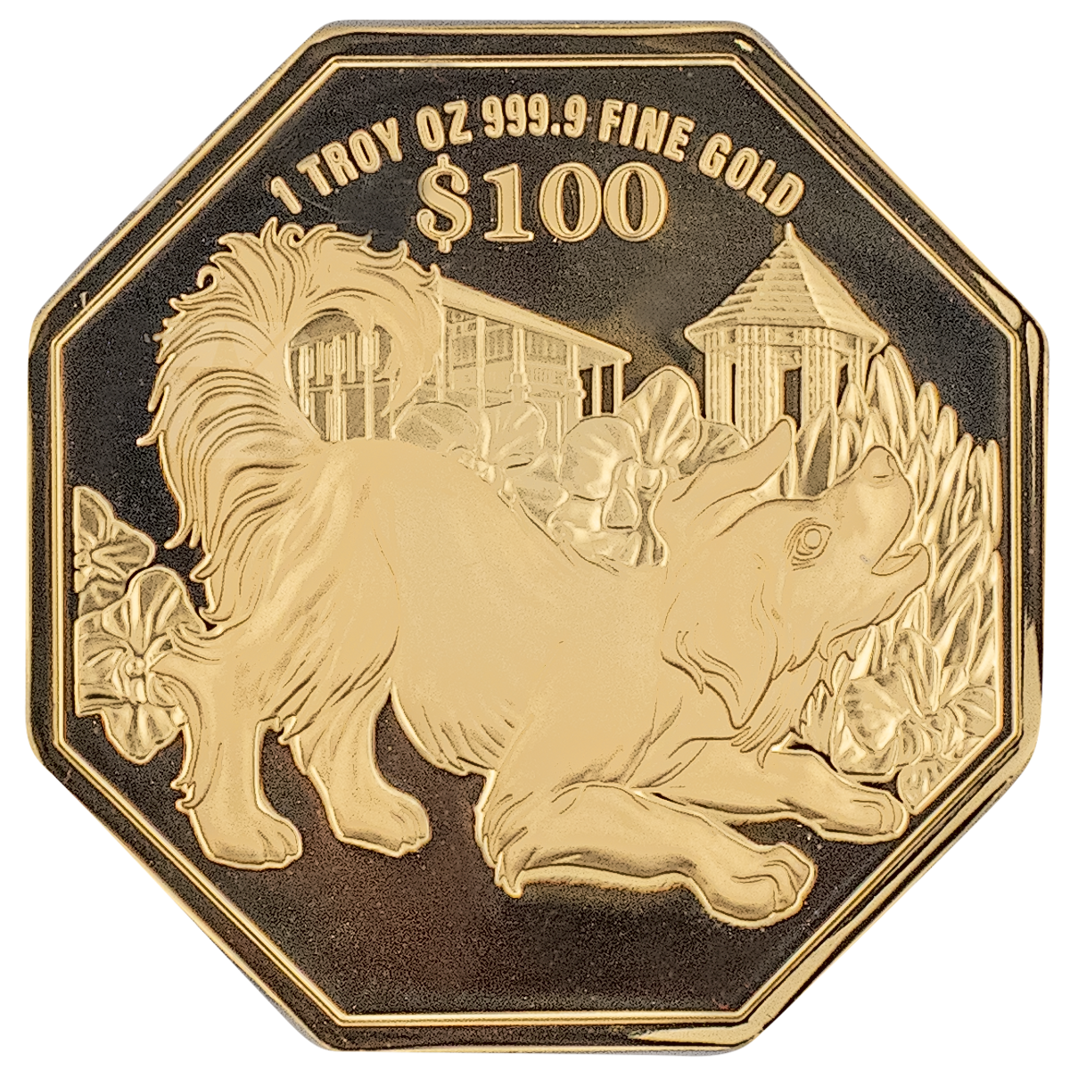 1 oz Octagon Lunar Dog coin minted by the the Singapore Mint to celebrate the Year of the Dog in 2018.