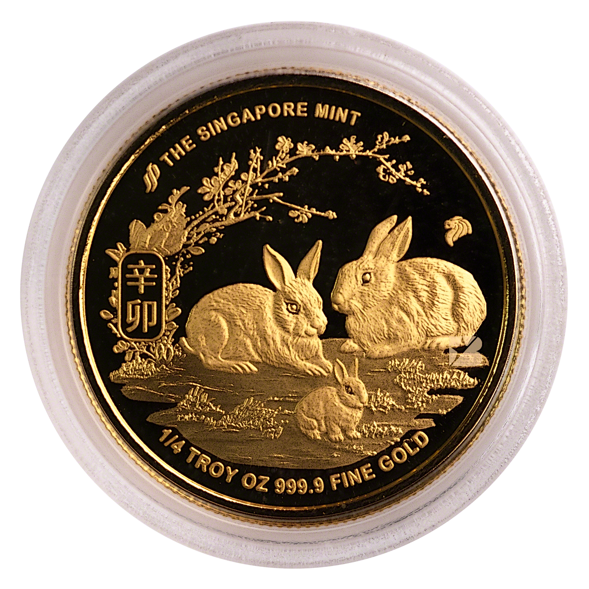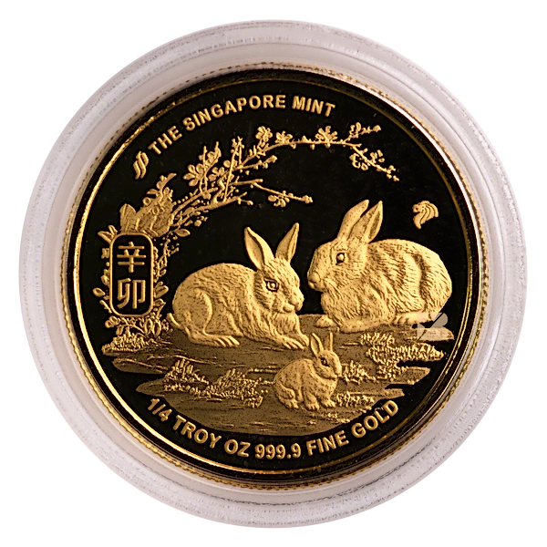 1/4 oz Lunar Series Year of the Rabbit Gold coin produced by Singapore Mint.