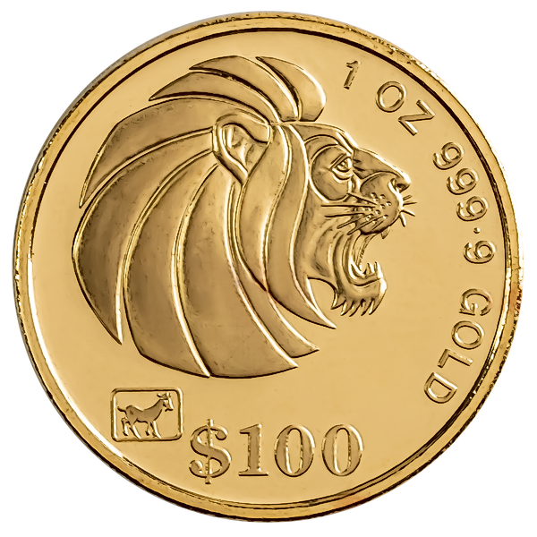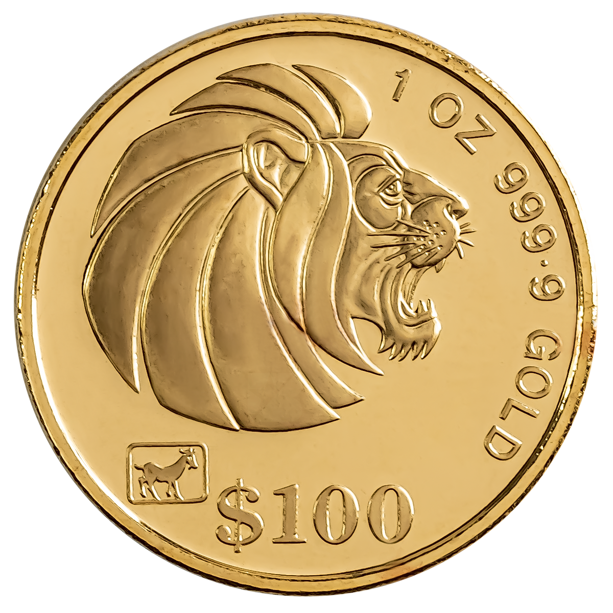 1 oz Gold Lion Minted by the the Singapore Mint.