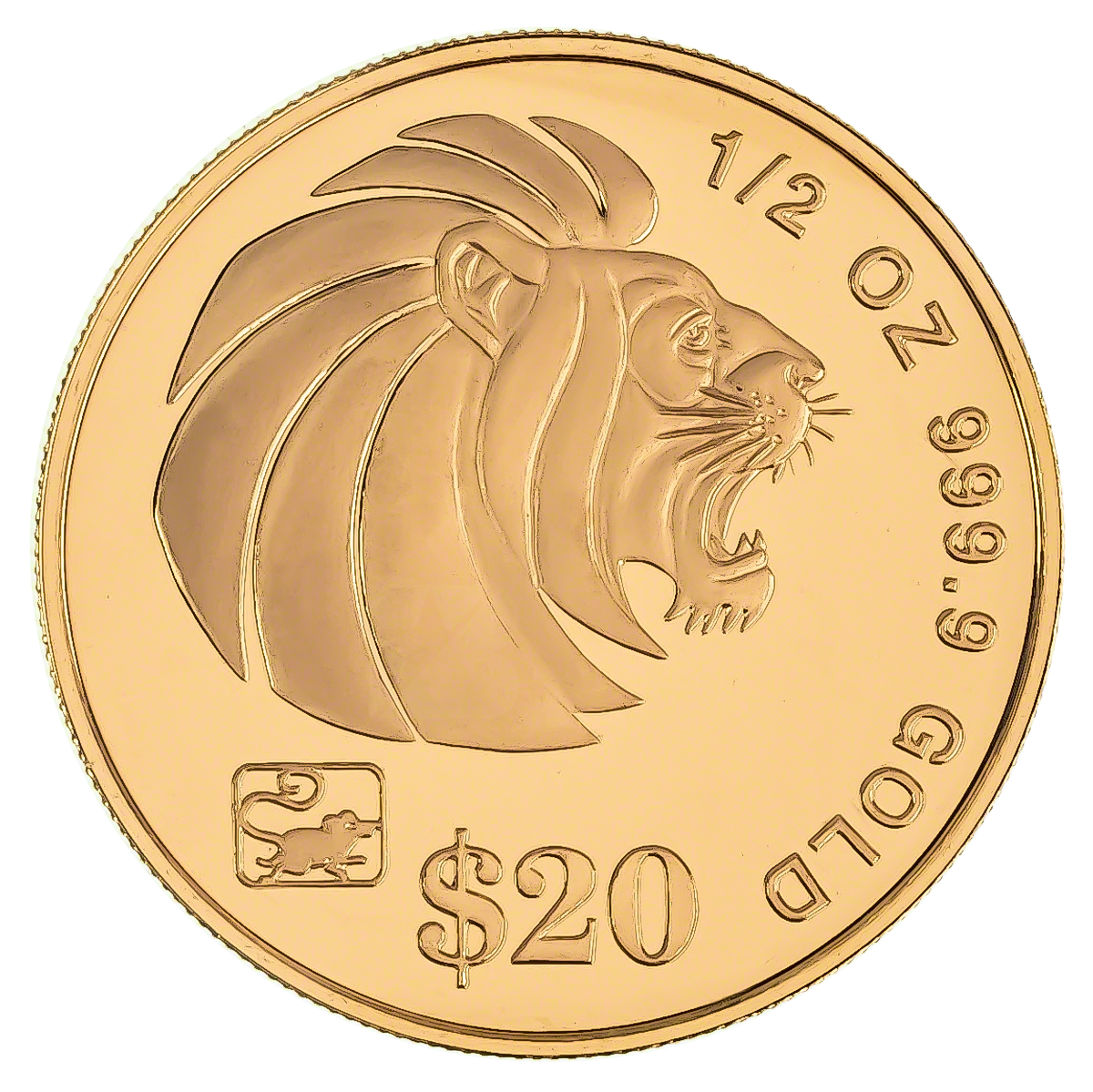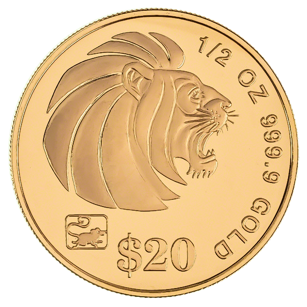1/2 oz Singapore Gold Lion minted by the the Singapore Mint.