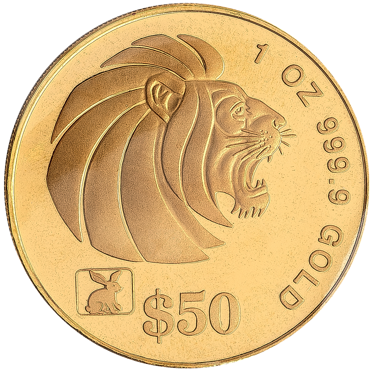 1 oz Gold Lion Minted by the the Singapore Mint.