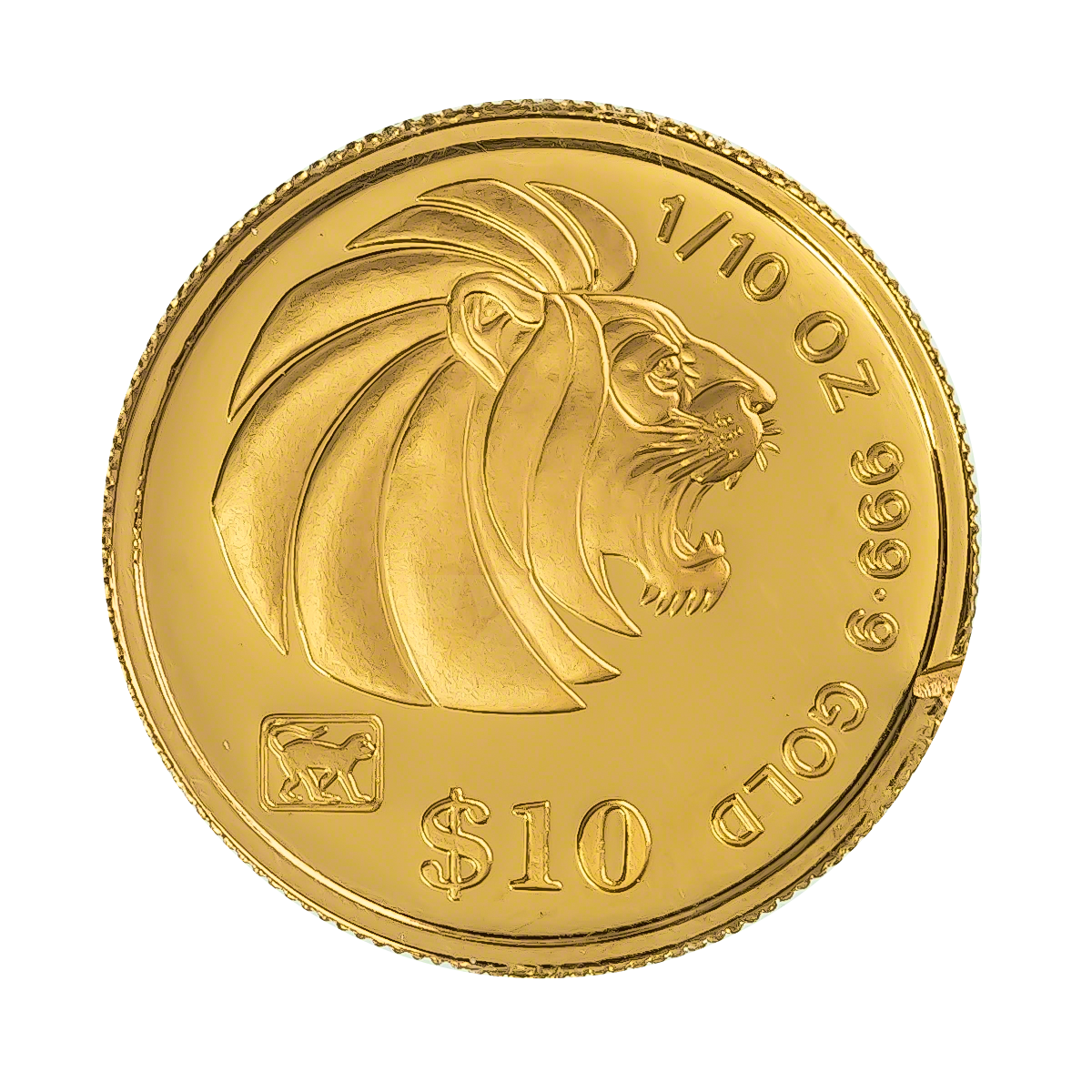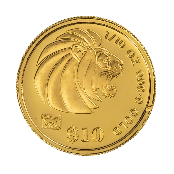 1/10 oz Singapore Gold Lion minted by the the Singapore Mint.