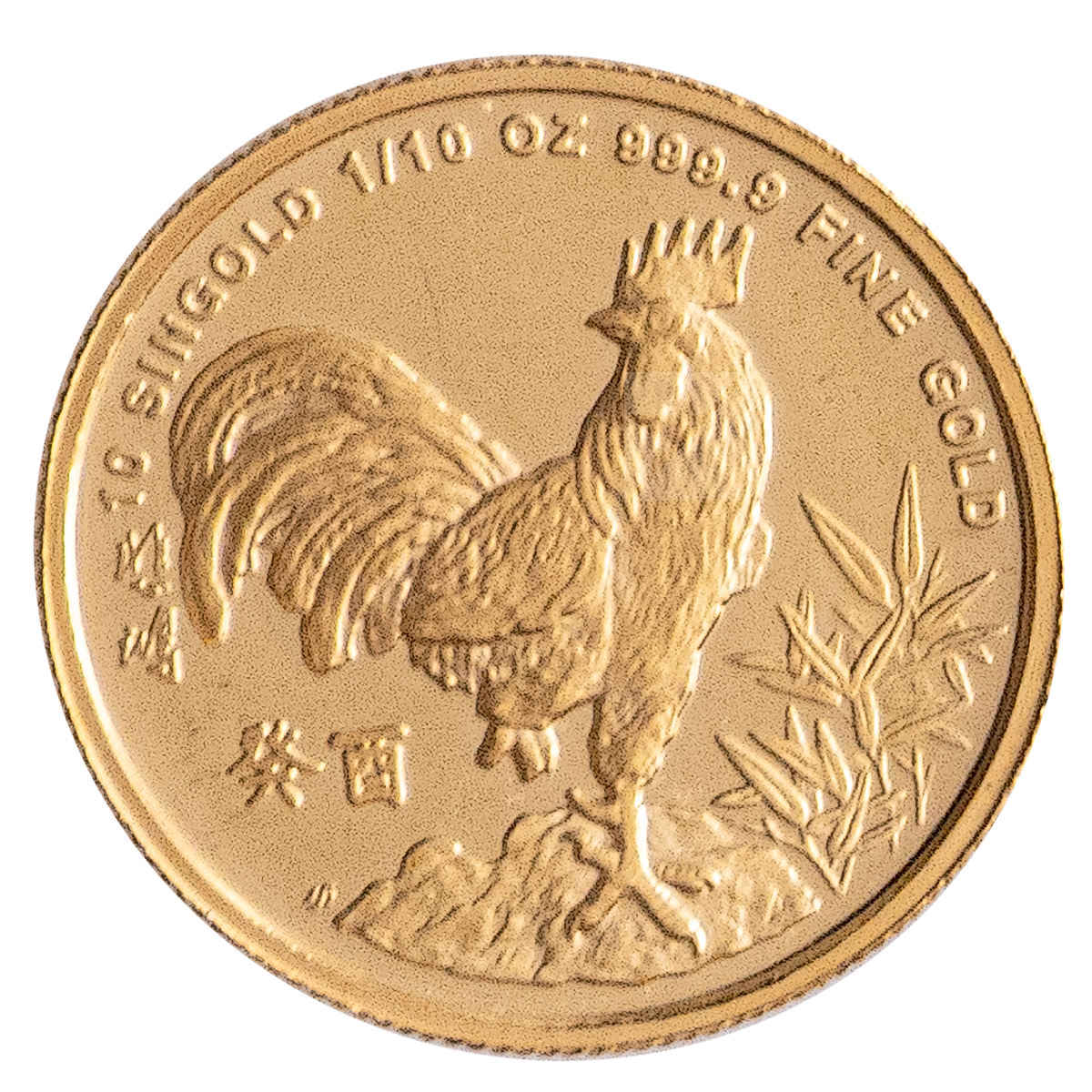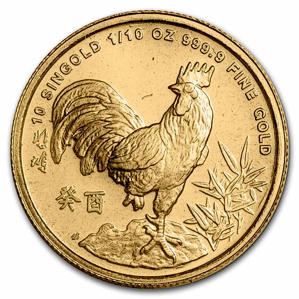 1/10 oz Lunar Year of the Rooster Produced by Singapore Mint.