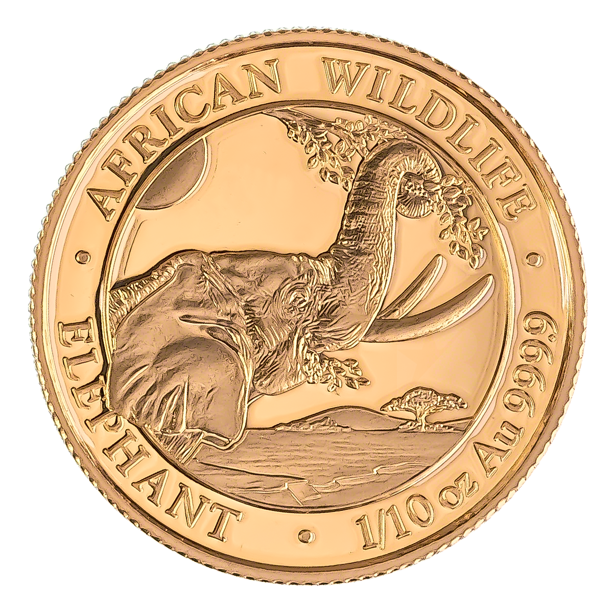 If you're seeking an elegant small gold bullion coin, the 1/10 oz Somalian Gold Elephant is an excellent choice.