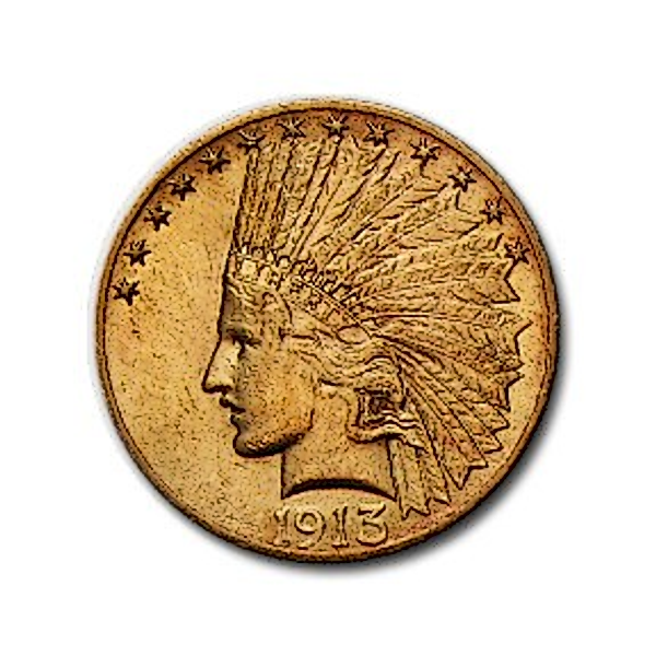 1913 American gold eagle Indian Head minted by US Mint.