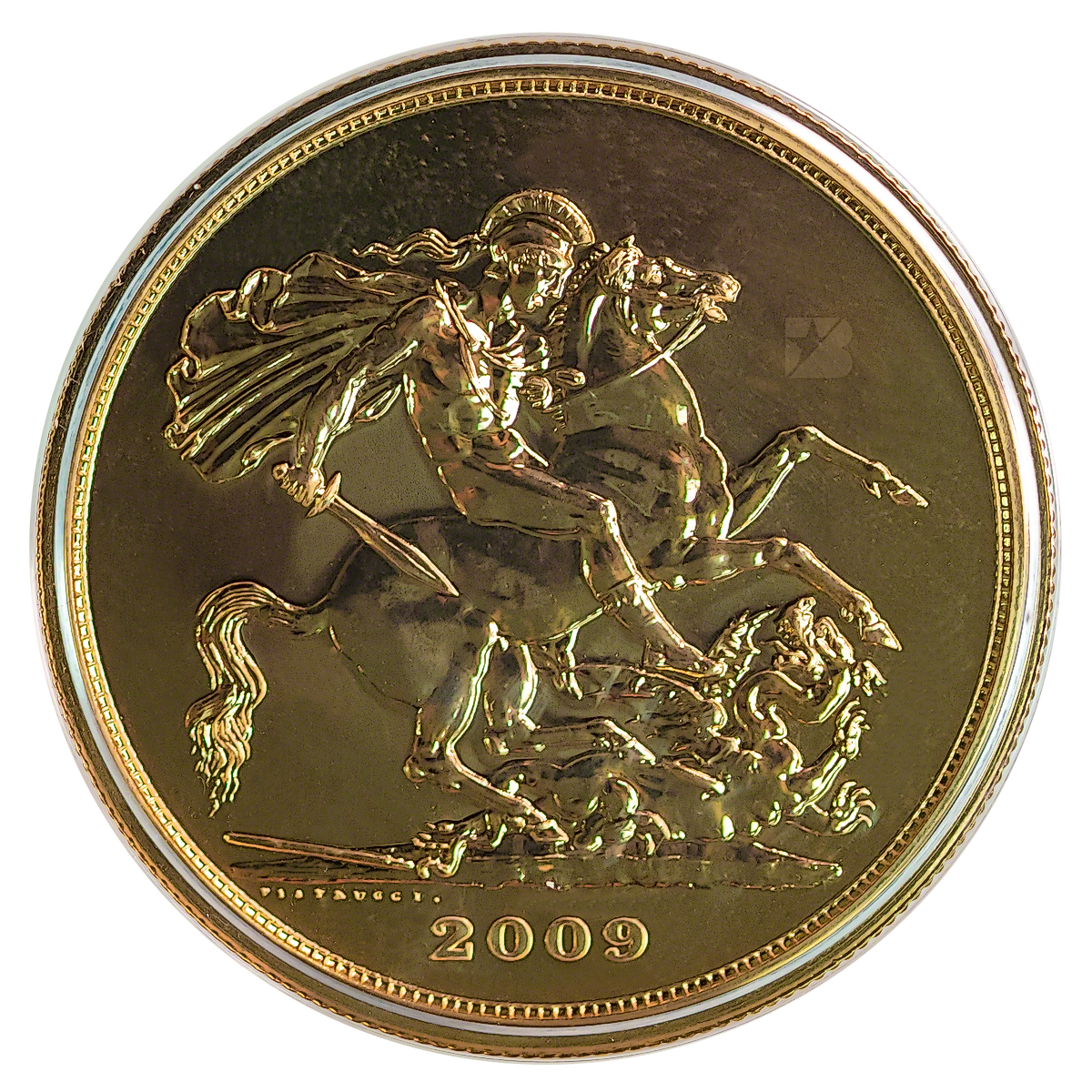 2009 Brilliant Uncirculated Gold five Pounds coin manufactured by the Royal Mint.