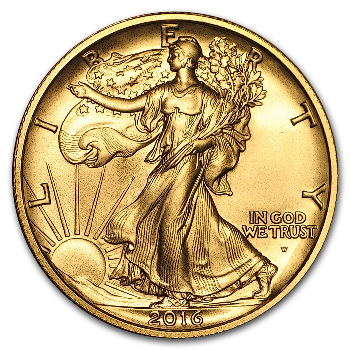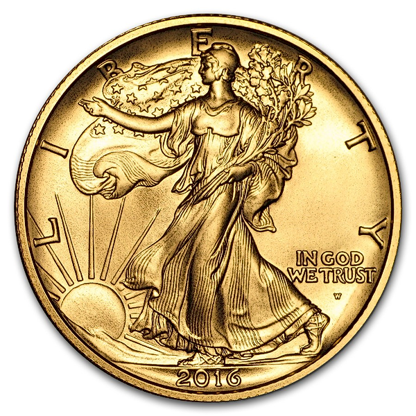 Half ounce gold Walking Liberty Half Dollar produced by the United States Mint.