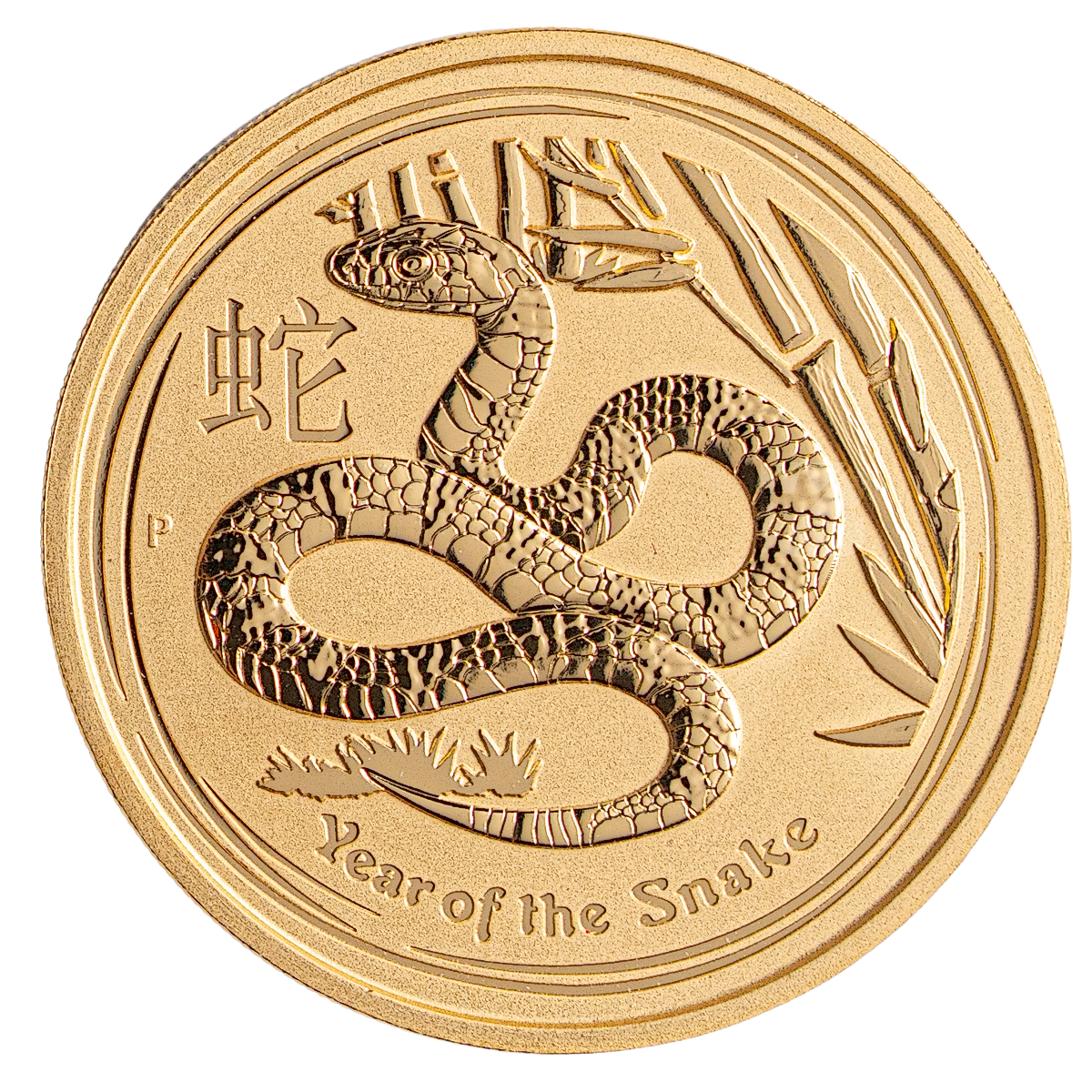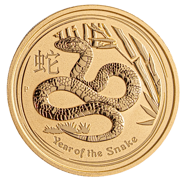 The reverse features a snake wrapped around a tree branch and bearing a striking scale pattern. "Year of the Snake" is imprinted along the bottom of the coin. The Perth Mint’s traditional ‘P’ mintmark is also inscribed on the left of the coin.
