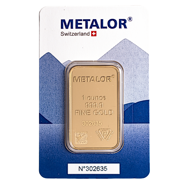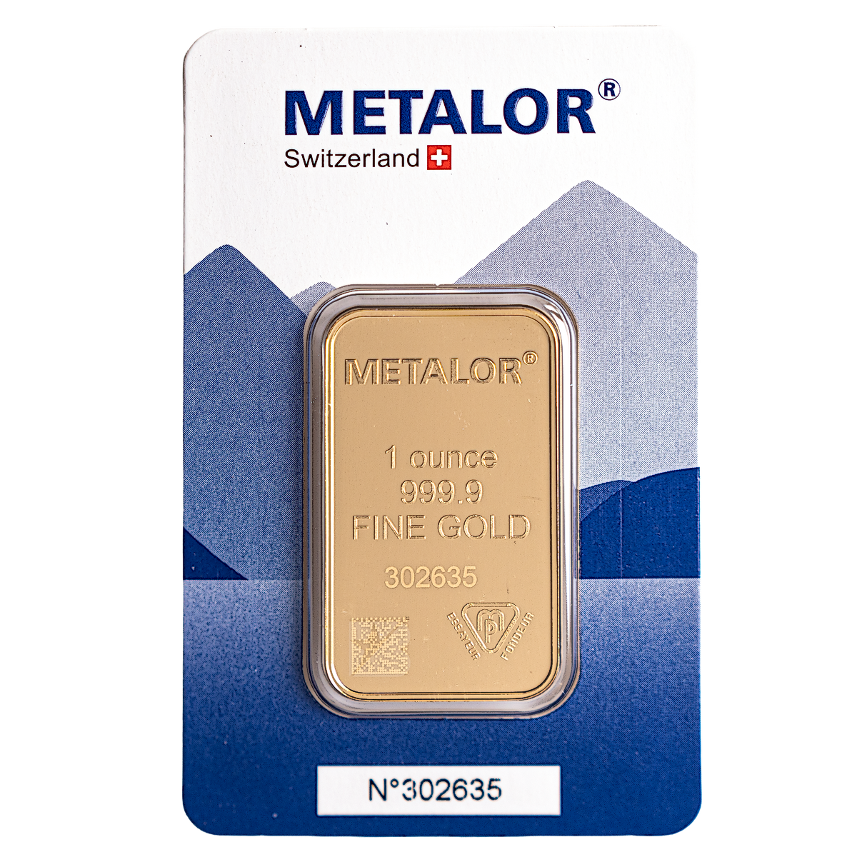 1 oz Gold bar minted by Metalor, a world renowned precious metals refinery based in Switzerland.