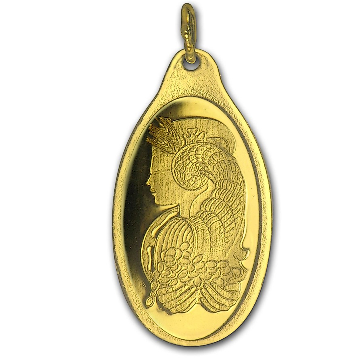 The 1 gram pendant can be in either the Lady Fortuna, Rose or Statue of Liberty design.