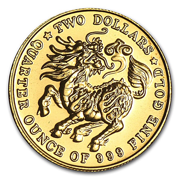 On the reverse, a Qilin, which is an Asian mystical beast is depicted.