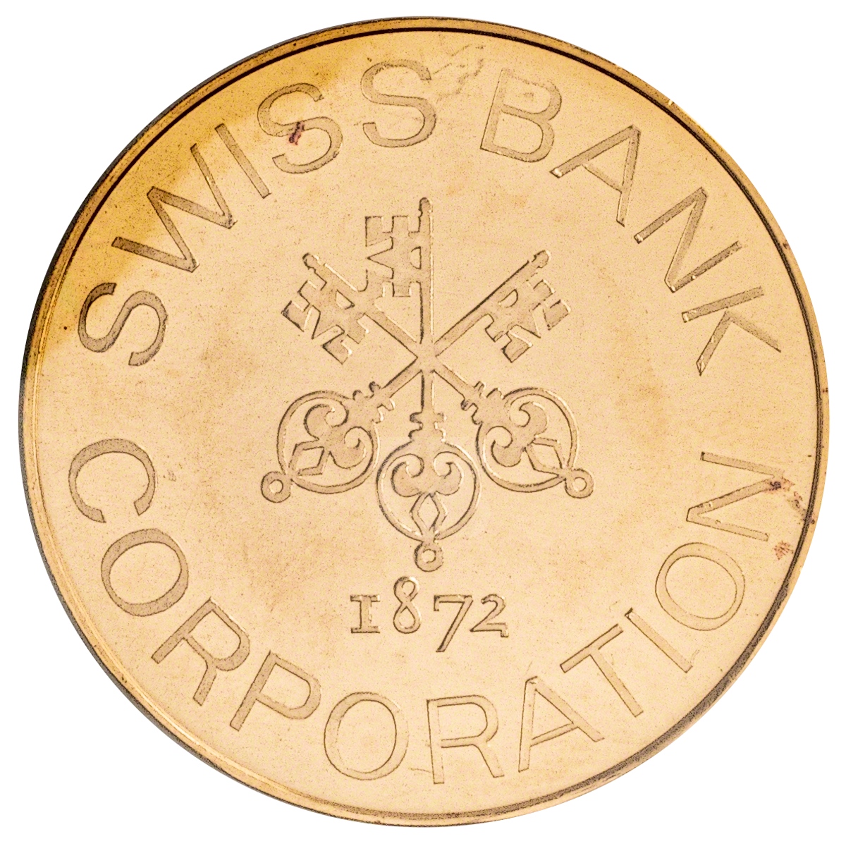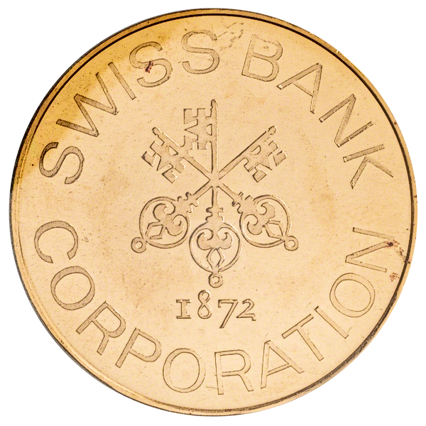 1 oz Swiss Bank Corporation round manufactured by Metaux Precieux SA.