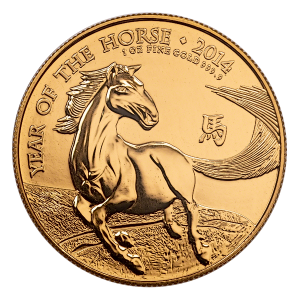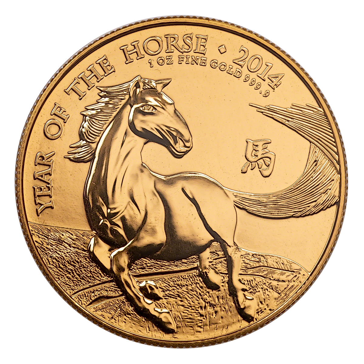 1 oz Lunar Year of the Horse gold bullion coin minted by the British Royal Mint.