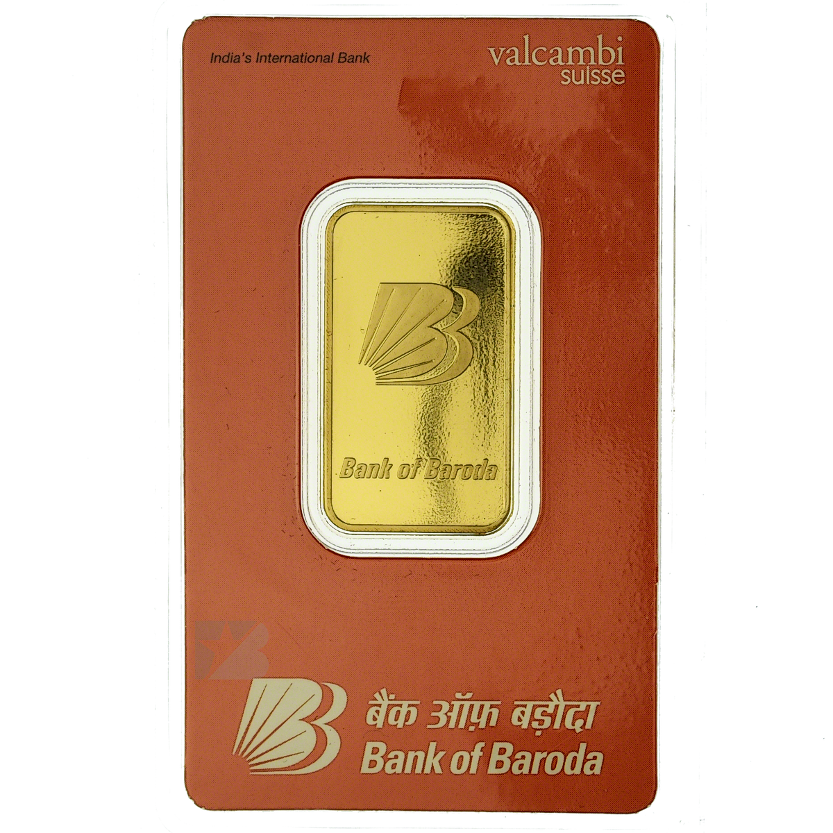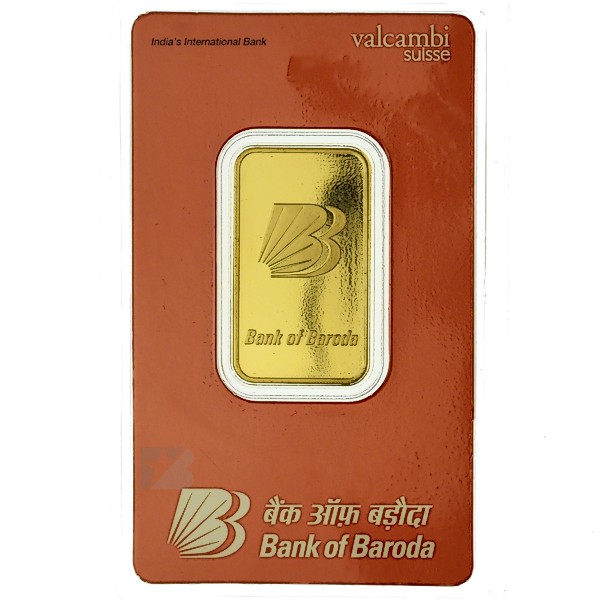 The gold bar is minted by Valcambi for the Suisse Bank of Baroda.