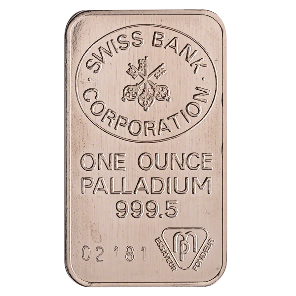 1 oz Palladium bar minted by Metaux Precieux SA for Swiss Bank Corporation.