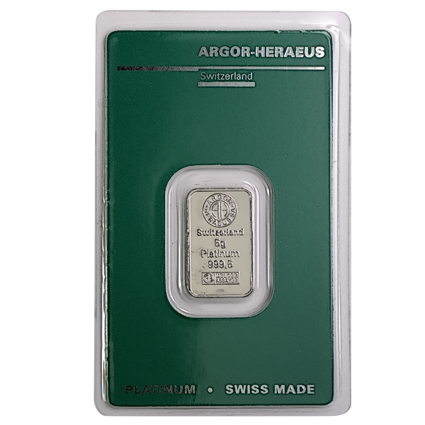 This high-lustre 5 gram minted platinum bar has a purity of 99.95% platinum and is fabricated in Switzerland at the Argor-Heraeus precious metals refinery in Mendrisio in the Swiss Canton of Ticino.